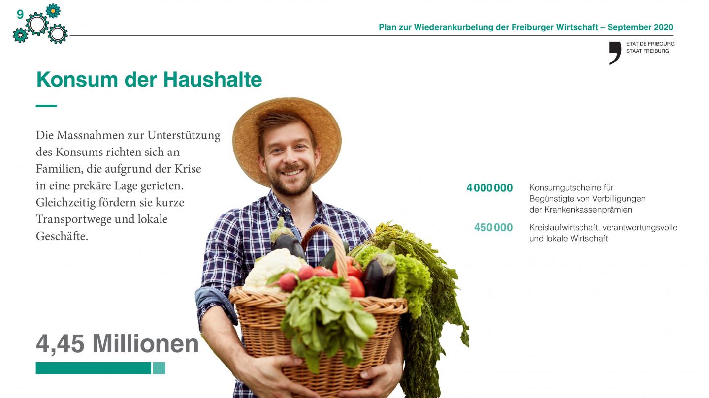 - Beschreibung der Massnahme: Etwa 27,5 % der Freiburger Bevölkerung haben Anspruch auf Zuschüsse, um die Belastung durch die Krankenkassenprämien zu reduzieren. Es handelt sich um etwa 88 000 Personen (31 000 Einpersonenhaushalte; 9000 Personen in Haushalten mit zwei erwachsenen Personen und 48 000 Personen in Familienhaushalten mit mindestens einem Erwachsenen und einem Kind). Durch die Bereitstellung von Konsumgutscheinen für den Teil der Bevölkerung, der Haushalte mit Kindern umfasst, hätten diese Familien zusätzliche Mittel für den Konsum. Diese Gutscheine im Wert von 150 Franken für Erwachsene und 100 Franken für Kinder werden über die Plattform kariyon.ch zur Verfügung gestellt und entfalten dadurch eine zusätzliche Hebelwirkung für die lokale Wirtschaft. Diese sozial orientierte Massnahme zielt darauf ab, den gesellschaftlichen Zusammenhalt zu gewährleisten und die Prekarität der von der Krise betroffenen Bevölkerungsgruppen zu verringern.