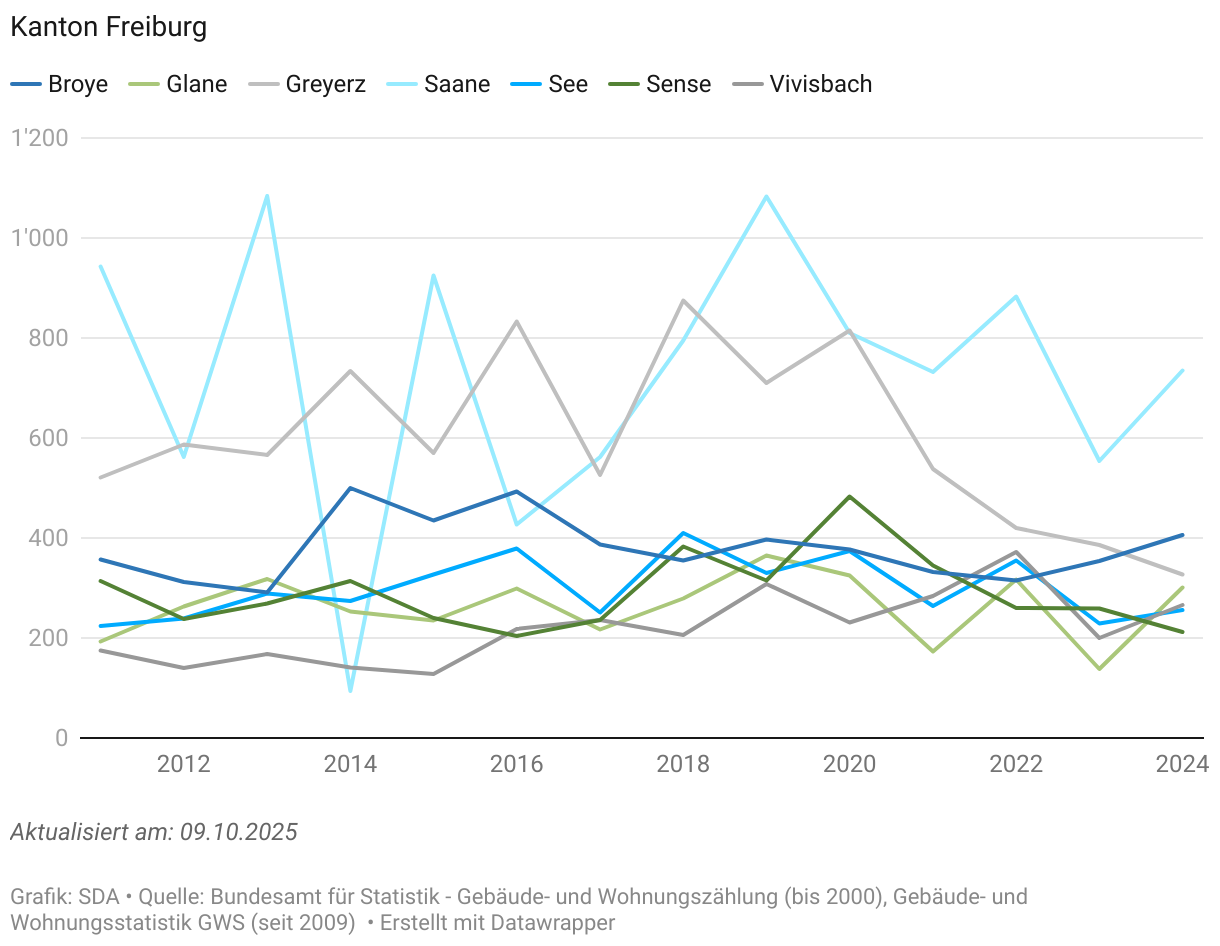 Saane- und Greyerzbezirk führend in der Wohnungsproduktion