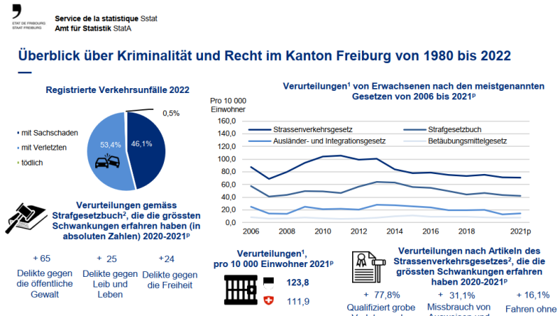 Das Amt für Statistik (StatA) liefert einige Zahlen zum Thema Kriminalität und Recht im Kanton Freiburg.