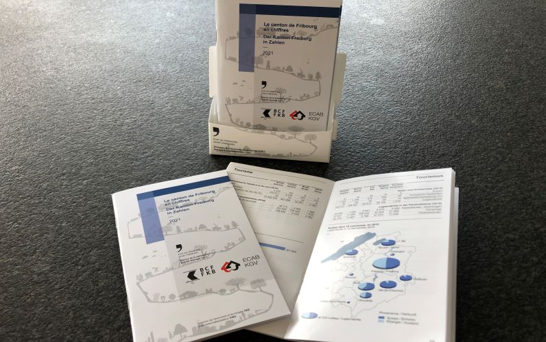Broschüre von ca. dreissig Seiten, die auf vereinfachte Art und Weise die wesentlichen statistischen Informationen über den Kanton und seine Bezirke präsentiert. Sie wird in Zusammenarbeit mit der Freiburger Kantonalbank herausgegeben.