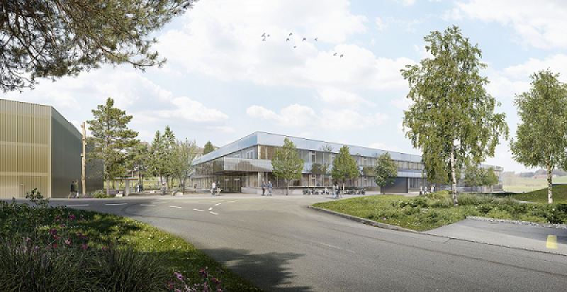 D’une surface de plancher totale de 22’344 m2, ce projet, conçu par Implenia Suisse SA à Fribourg, en collaboration avec le bureau d’architecture deillon delley SA à Bulle et un ensemble de planificateurs fribourgeois, permettra de faire face à l’augmentation prévue en termes d’effectifs. L’accent a été mis sur la recherche de qualité du bâti, de confort de vie et d’efficience énergétique. Situé à 20 minutes en transports publics de la gare de Fribourg, le projet a été conçu pour développer des synergies importantes entre les différents métiers. Le sous-sol et le rez-de-chaussée seront réalisés en béton recyclé, alors que la toiture sera dotée d’une structure entièrement en bois suisse et sera équipée de panneaux solaires sur toute la surface (production électrique d’env. 810 kWc). Répartis sur deux niveaux, les ateliers « lourds » seront regroupés au rez-de-chaussée et ceux nécessitant peu de déplacement de charge (cuisine, coiffure, etc.) seront situés à l’étage. Ce bâtiment sera doté d’un foyer accueillant, directement relié à l’entrée, offrira une vue dégagée sur l’ensemble du site.