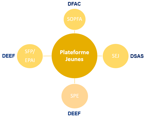Accueil Direction de l’économie, de l’emploi et de la formation professionnelle Plateforme Jeunes Organisation de la PFJ Organisation de la PFJ Chapeau Organisation de la PFJ Membres de la Plateforme Jeunes Agrandir Organisation PFJ © Etat de Fribourg - Staat Freiburg Plateforme Jeunes Bureau de conseil social et d'accompagnement à la formation Focus Formation Mesures d'insertion professionnelles locales et bas seuil SeMo/PréFo Direction / Service propriétaire Plateforme Jeunes (PFJ) Information de contact Publié par Plateforme Jeunes Dernière modification : 16.01.2023 Partager sur :