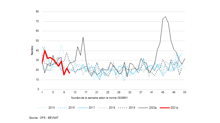Devant ces éléments, plusieurs questions restent en suspens. Est-ce que le nombre de décès va rester très important ? Va-t-il revenir à la normale dès cette année déjà ? Ou faudra-t-il attendre 2, 3 ans ou plus ? Ou encore, comme au printemps 2020, va-t-on assister à un épisode plus ou moins long de sousmortalité avant un retour à la normale ? Avec l’apparition de nouveaux variants du virus et les effets des mesures prises progressivement par la Confédération, nous ne disposons pas encore d’éléments solides qui permettent d’anticiper de manière certaine des effets de la Covid-19 sur la population de notre canton et plus particulièrement sur celle de nos aîné-e-s.Pour l’heure, les derniers chiffres disponibles des décès par groupe d’âges montrent que nous sommes retournés à une situation similaire à celle d’avant l’apparition de la Covid-19. Nous espérons que la situation se sera quelque peu clarifiée au moment où nous allons mettre à jour nos prévisions démographiques pour le canton de Fribourg à l’automne de cette année.