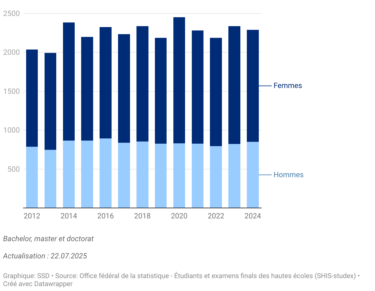 Titres délivrés par l'Université de Fribourg, de 2012 à 2024