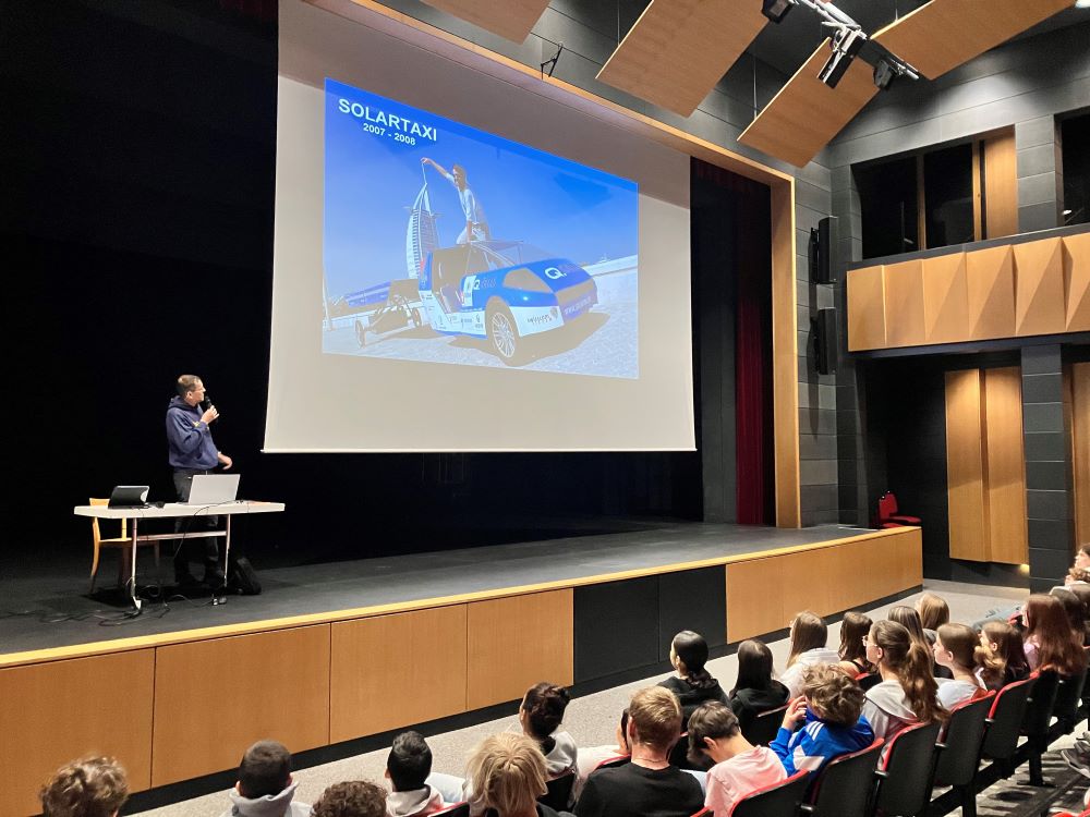 Le SolarButterfly sera visible au CO de la Veveyse, dans la cour du bâtiment Beta. Les élèves de 9H et 10H seront présents et relèveront un défi de 30 questions sur le thème du « changement climatique ». L'initiateur Louis Palmer déclare : « Avec le SolarButterfly, nous voulons également faire de l'éducation environnementale. Parce que chaque individu a le choix de faire partie du problème – ou de la solution. »