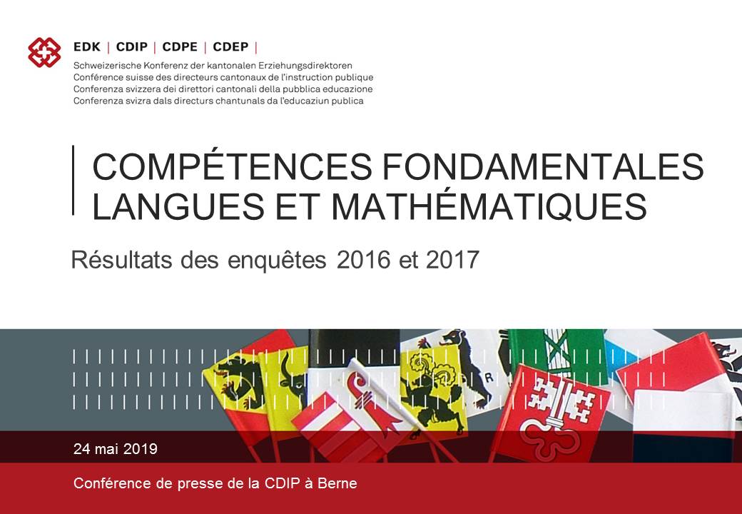 La Conférence suisse des directeurs cantonaux de l’instruction publique a présenté ce matin les résultats de deux enquêtes qui se sont déroulées en 2016 et en 2017. Ces deux enquêtes visaient à mesurer l’atteinte des compétences fondamentales en langues et en mathématiques. Ce qui a été testé : divers aspects de compétence pour les mathématiques, pour la langue de scolarisation (L1) – la compréhension écrite et l’orthographe – l’allemand première langue étrangère (L2) pour les élèves francophones et le français (L2) pour les élèves germanophones.