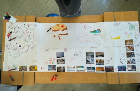 Les enseignant-e-s ont vécu une matinée riche et intense en échanges et en apprentissages. Ils et elles sont fiers des élèves qui ont collaboré plus de 3 heures pour élaborer la fresque, échanger et trouver des pistes d’action. Les enfants avaient entendu parler de plusieurs notions, mais ne les avaient pas forcément mis en lien. Le fait de lier les causes avec les effets leur a donné une grande motivation à illustrer leur fresque pour faire passer un message sans doute un peu inquiétant, mais rempli d’espoir.