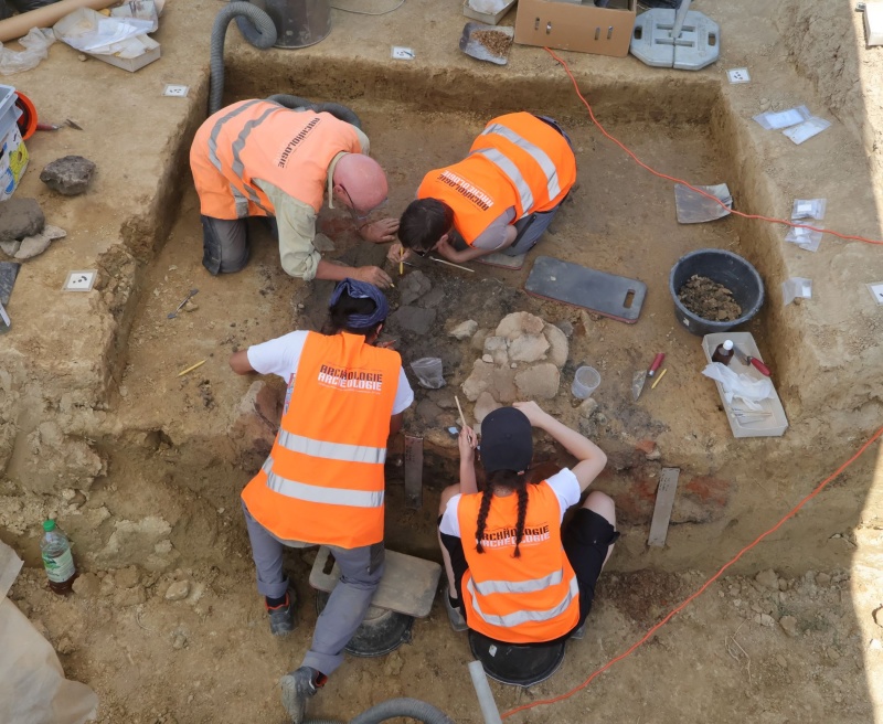 La fouille d’urgence a permis de mettre au jour une imposante fosse, employée à multiples reprises comme four. À l’intérieur se trouvaient notamment de nombreux fragments de céramique exceptionnellement bien conservés et de grandes dimensions. Après le premier constat des archéologues, la forme des récipients et le style des décors indiquent que ce four en fosse a été utilisé au cours de l’âge du Bronze final (1100 - 800 av. J.-C.).