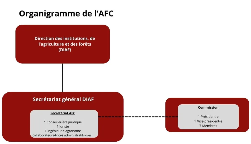 Accueil Direction des institutions, de l'agriculture et des forêts Autorité foncière cantonale Organigramme de l'AFC Organigramme de l'AFC Chapeau Description de l'organisation de l'Autorité foncière cantonale (AFC) Blocs (Site Studio) Organigramme de l'AFC © Etat de Fribourg - Staat Freiburg Image principale Prairie et champ de colza © Tous droits réservés - pixabay.com/CCO Autorité foncière cantonale Bail à ferme agricole Droit foncier rural Exploitations d'estivage Direction / Service propriétaire Autorité foncière cantonale Information de contact Publié par Autorité foncière cantonale Dernière modification : 21.01.2025 Partager sur :