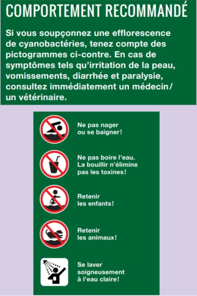Merci de contacter la police au 117 si vous remarquez la présence de cyanobactéries.