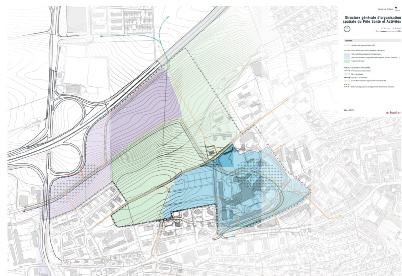 Le rapport a été présenté vendredi au public par les trois conseillers d’Etat Olivier Curty, Philippe Demierre et Jean-François Steiert, ainsi que par Philipp Müller, directeur général de l’hôpital fribourgeois (HFR), Bruno Marmier, syndic de Villars-sur-Glâne, et Thomas Zwald, représentant de la Bourgeoisie de Fribourg. Il propose une vision urbanistique d’ensemble pour ce secteur stratégique du canton, prévoyant la construction d’un nouvel hôpital de soins aigus, d’un campus de formation, d’un potentiel d’espace destiné à des logements dédiés notamment au personnel des soins et aux personnes avec besoins de soins et d’une zone d’activités économiques – soit quatre fonctionnalités indépendantes, mais interconnectées. Son objectif est de définir les principales orientations pour un développement durable du site, en créant un quartier urbain résilient, bien connecté et intégrant des infrastructures modernes en matière de santé, d’enseignement et d’activités économiques avec de grands potentiels de synergies.