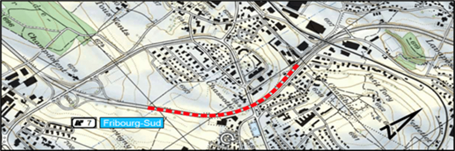 Dans le cadre de ce projet, l’OFROU assure la direction des études relatives à la couverture de l’autoroute N12. La première phase des études relatives à la couverture a déjà été achevée. Suit maintenant la deuxième partie des études nécessaires à la réalisation du projet. Si le Grand Conseil et ensuite le peuple fribourgeois accepteront le projet élaboré, la réalisation de la couverture pourrait commencer en 2031, avec une mise en service possible en 2033.