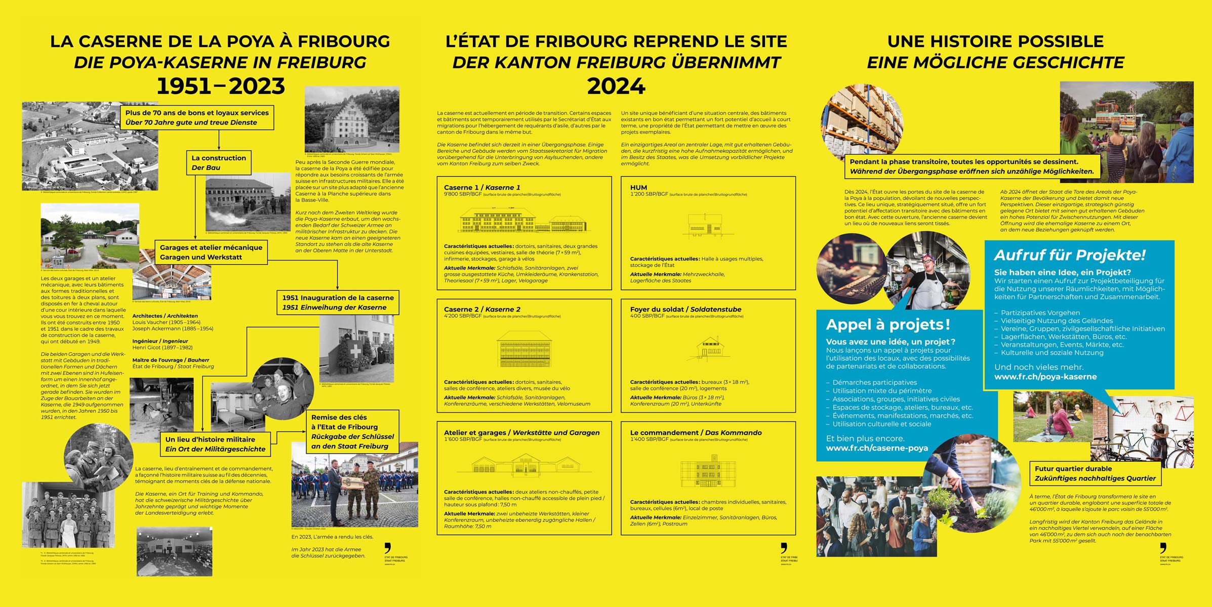 Une démarche participative citoyenne sera lancée le jeudi 21 mars 2024. L’objectif est de questionner l’avenir du site. Pour cela, nous avons besoin de votre participation. Si vous êtes intéressé-e-s, vous pouvez vous inscrire via ce lien : https://quartierdelapoya.ch/formulaire-dp/