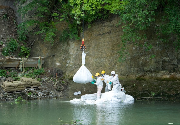 - Mise en place des sols excavés en andains recouverts d'une bâche