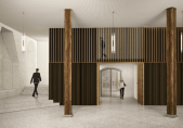 L’aile Est du 2ème étage, dépourvue d’ouvertures, abrite les archives du Registre Foncier et de la Préfecture tandis que les archives du SAINEC sont judicieusement logées dans l’autre espace borgne situé au rez-de-chaussée supérieur. Dans les combles, les espaces du SEJ (Service de l’enfance et de la jeunesse) prennent place dans la partie Sud et se caractérisent notamment par un espace d’accueil de qualité devenant une véritable place de jeu.