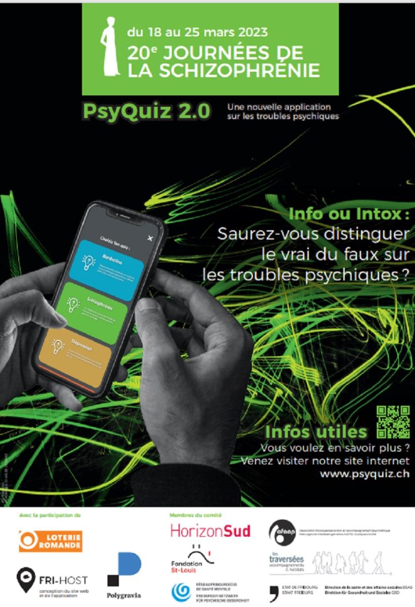 L’application PsyQuiz, développée il y a une année par le comité fribourgeois des Journées de la schizophrénie réunissant divers partenaires actifs dans le domaine de la santé mentale, fait peau neuve !