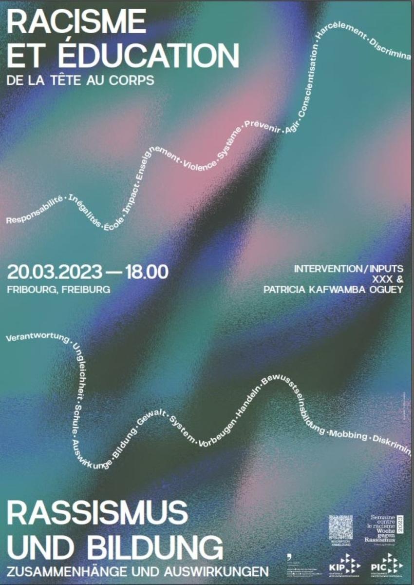 Conférence et ateliers de formation continue Lundi 20 mars à Fribourg (Théâtre Equilibre, 18h), une conférence intitulée « Racisme et éducation – de la tête au corps », constituera l’événement phare de la Semaine contre le racisme. M. Fuat Köçer, responsable d’un cycle d’orientation bernois, analysera les enjeux du racisme structurel dans l’éducation en lien avec ses expériences personnelles. Patricia Kafwamba Oguey, physiothérapeute et thérapeute psycho-corporelle, proposera une approche immersive sur la manifestation du racisme, son intériorisation et ses effets sur les enfants et les jeunes. L’événement est complet.