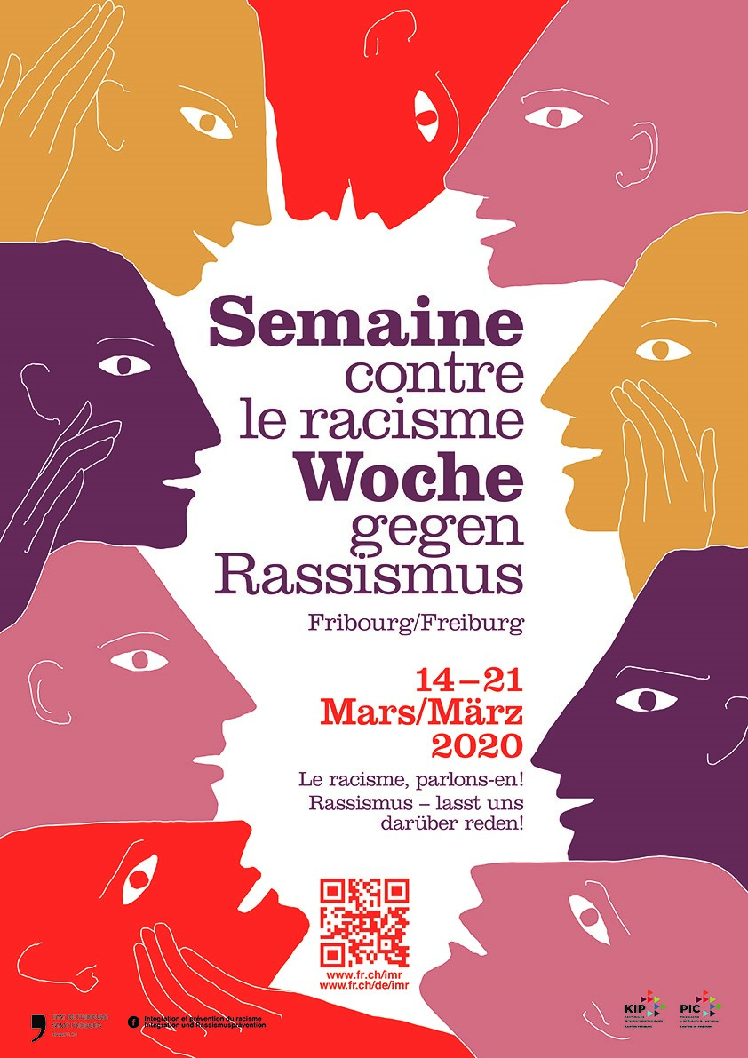 "Le racisme, parlons-en! C'est ce thème qui a été choisi par le Bureau de l'intégration des migrant-e-s et de la prévention du racisme IMR et ses partenaires pour servir de fil rouge à la Semaine fribourgeoise contre le racisme 2020.