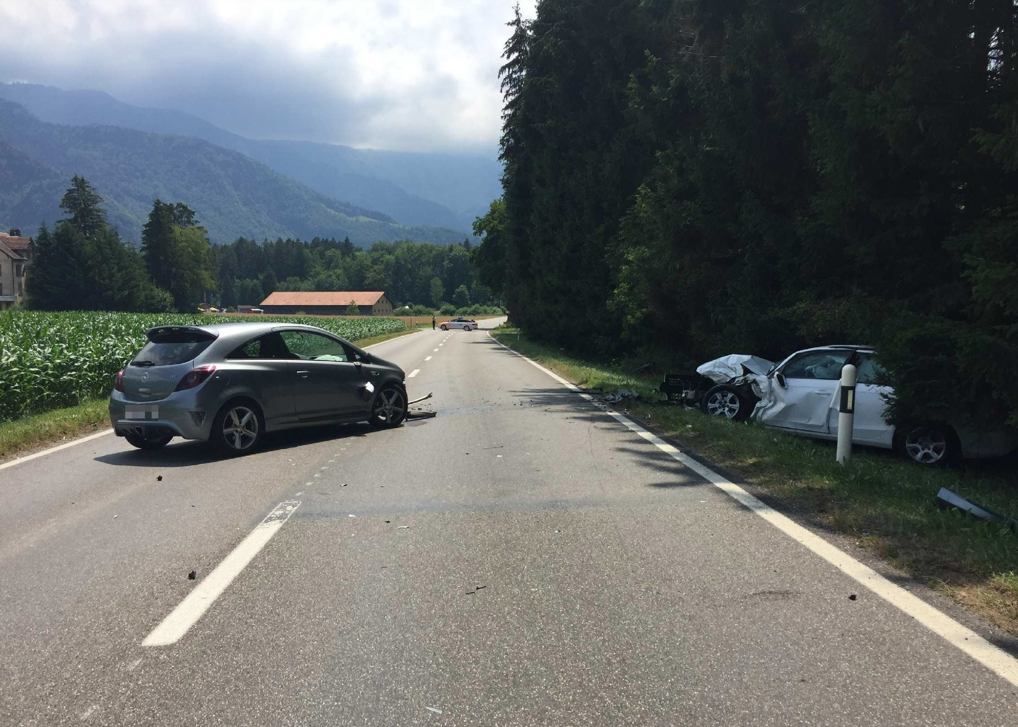 Lundi 9 juillet 2018, vers 12 h 30, un homme de 21 ans circulait avec son véhicule sur la route de l'Intyamon, d'Epagny en direction de La Tour-de-Trême. A la hauteur de la ferme située au numéro 200, il s'est déporté sur la voie opposée et a heurté frontalement la voiture circulant en sens inverse, conduite par un homme de 54 ans.