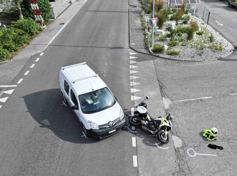 Le lundi 14 juillet peu avant 17h00, à Châtel-St-Denis, un automobiliste de 21 ans circulait sur la route de Montreux en direction du centre-ville. En obliquant à gauche à la hauteur du numéro 140, une collision s’est produite avec un motard de la police en course urgente remontant la file de voitures. Le choc a entraîné la chute du motard.