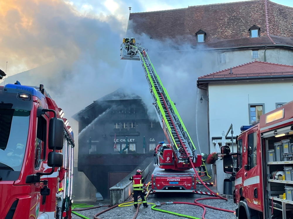 Ce samedi 02.07.2022, peu après 04h30, la police cantonale est informée d'un incendie dans un restaurant en ville de Gruyères. Les sapeurs-pompiers (centre de renfort de Bulle et régionaux), qui sont intervenus rapidement, ont pu circonscrire et maîtriser l'incendie assez rapidement. Ils ont ainsi pu éviter que les flammes ne se propagent aux bâtiments voisins.