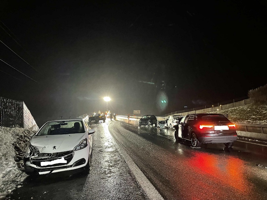 Vendredi 3 décembre 2021, peu après 23h30, un carambolage impliquant six véhicules est survenu sur l’autoroute A12, entre Vaulruz et Bulle. Cette portion d’autoroute a été fermée à la circulation jusque peu après 4h du matin en raison des voies obstruées et verglacées. Le trafic autoroutier a été dévié sur la route cantonale à la jonction de Vaulruz.