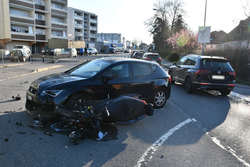 Mardi 4 avril 2023, vers 7h30, la Police cantonale et des ambulanciers sont intervenus pour un accident de la circulation avec des personnes blessées à Villars-sur-Glâne, à la route de la Glâne.