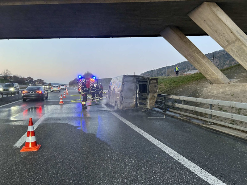 Jeudi 2 avril 2026, vers 19h15, un véhicule circulant sur l’autoroute A12 en direction de Bulle asubitement pris feu, à la hauteur de Châtel-St-Denis. Son conducteur, un homme de 68 ans, s’estimmédiatement arrêté sur la bande d’arrêt d’urgence et a pu quitter son véhicule indemne.