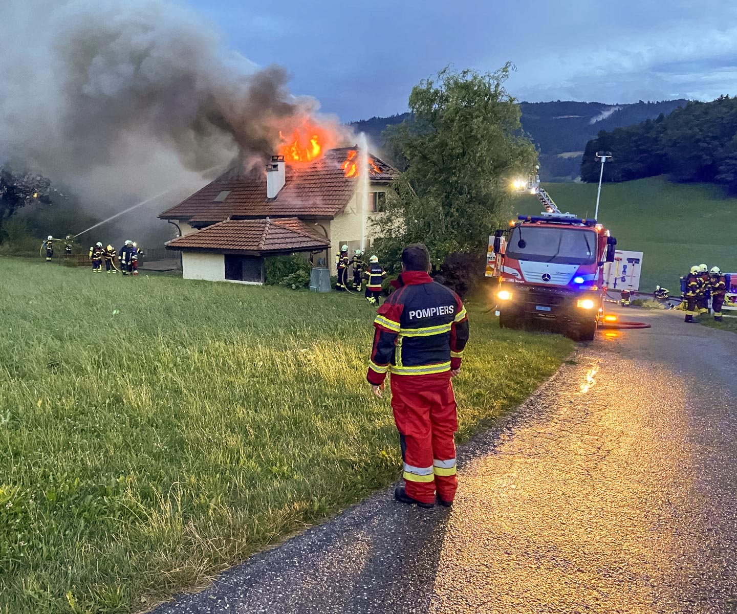 Sur les lieux, il a été constaté que le toit de la maison était la proie des flammes. Plus d’une quarantaine de pompiers des bases de départ de Châtel-St-Denis et Grattavache ainsi que le service de soutien sanitaire opérationnel (SSO) ont été engagés. Ils sont venus à bout de l’important incendie déclenché par la foudre qui s’est abattue sur la bâtisse.