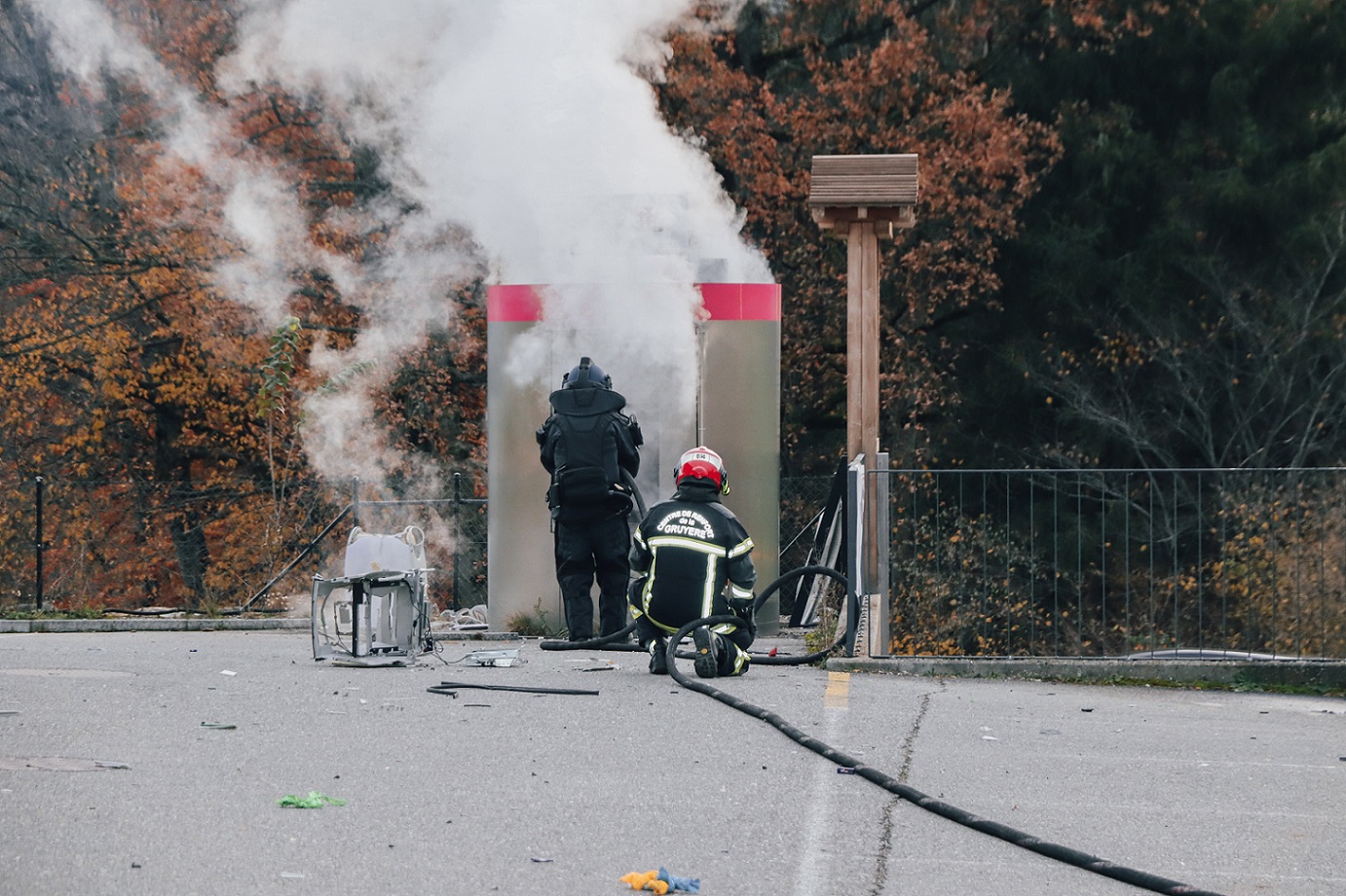 Avec l’appui des Polices cantonales vaudoise et bernoise, un important dispositif de recherches a été mis en place par la Police fribourgeoise, qui n’a pas permis de retrouver les personnes à l’origine de l’explosion. Le Commissariat d’identification judiciaire, le groupe NEDEX (neutralisation, enlèvement, destruction des explosifs) de la Police cantonale vaudoise, fedpol et le FOR (Institut forensique de Zürich) ont été sollicités pour sécuriser les lieux et déterminer l’origine de l’explosion.