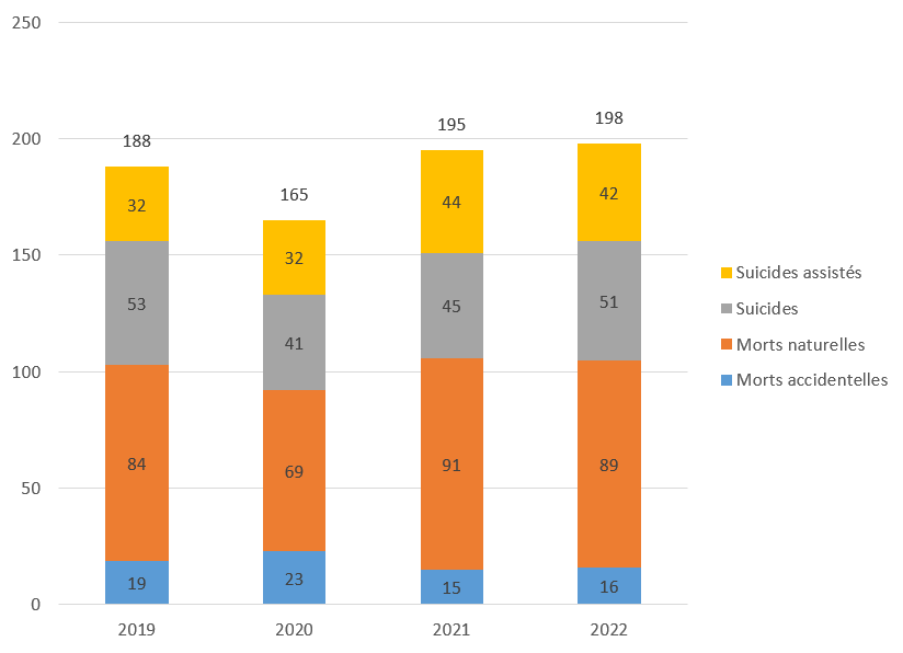 | Levée de corps | 195 | 198 | 237 | 218 | -8 % |