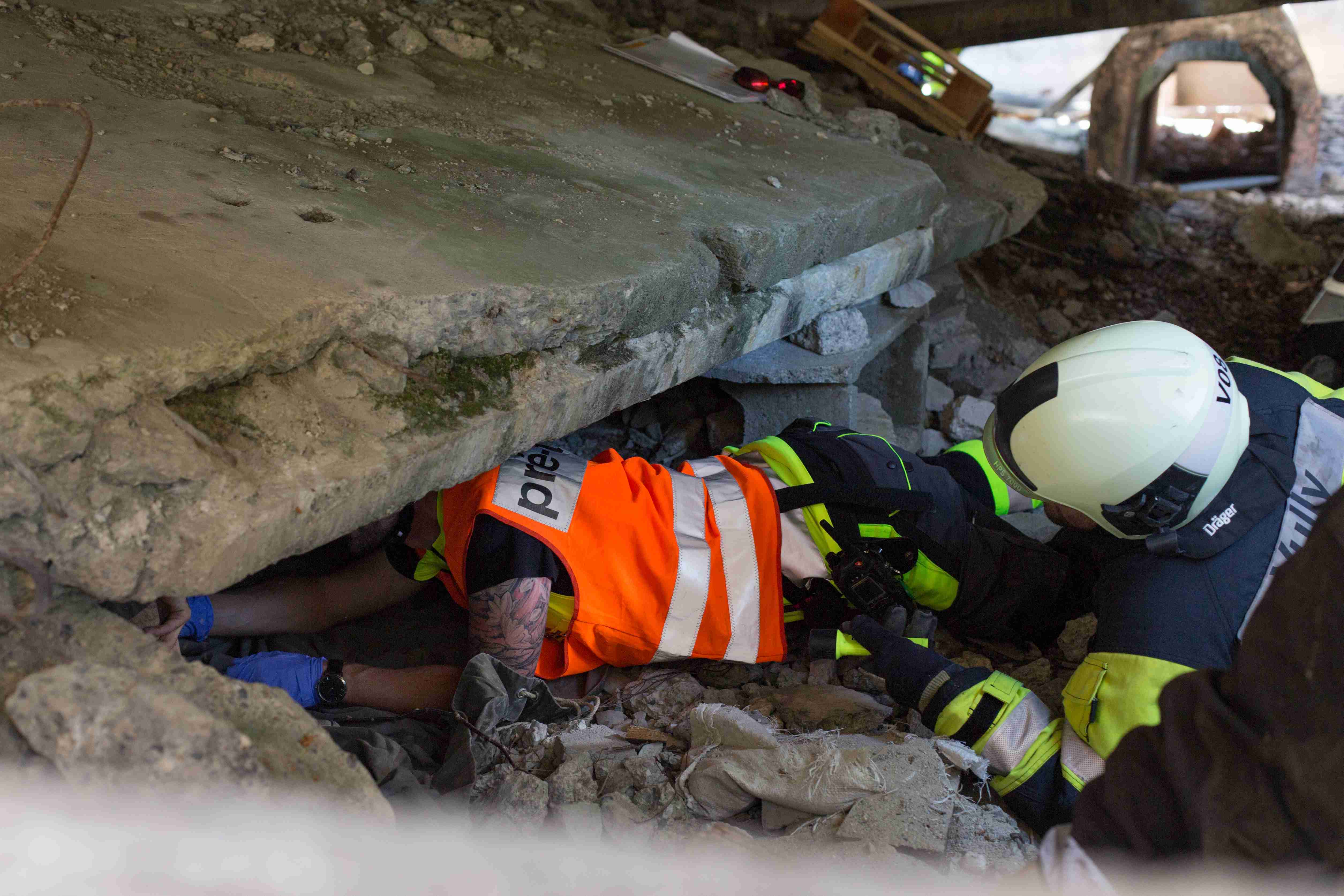 Les premiers exercés arrivés sur les lieux ont découvert une situation effrayante, qu'ils ont ensuite dû gérer: une explosion d'origine inconnue a fait s'effondrer sur lui-même un bâtiment de colonie de vacances de trois étages. Des blessés sont visibles, on entend des cris de demande d'aide. Certains jeunes ont pu se dégager d'eux-mêmes, d'autres errent autour de l'immeuble. Il y a quatre morts….