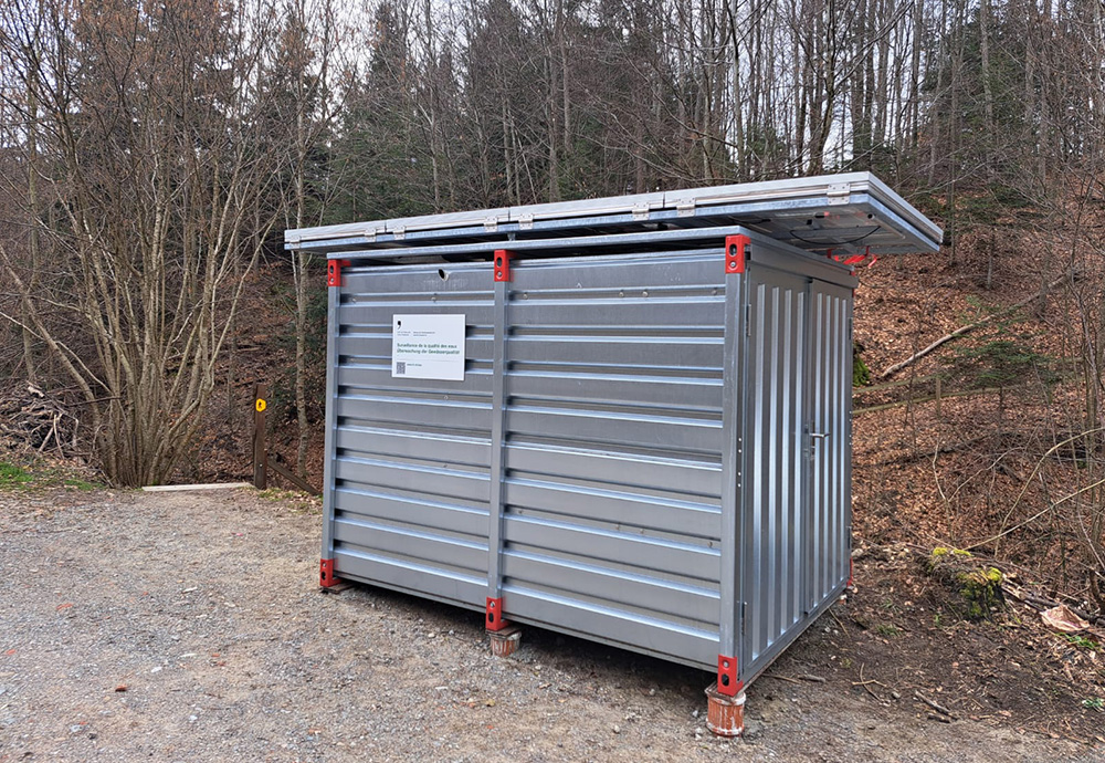 Un bassin versant a été choisi à Schiffenen dans la commune de Düdingen. La station prélève les eaux du ruisseau du Schiffenengraben avant son embouchure dans le lac de Schiffenen. Conçue par la Haute école d’ingénierie et d’architecture de Fribourg, elle dispose d’une série de batteries alimentées par quatre panneaux photovoltaïques, complétée par un générateur à essence d’appoint, qui assure une production totalement autonome du courant électrique nécessaire au bon fonctionnement du préleveur.