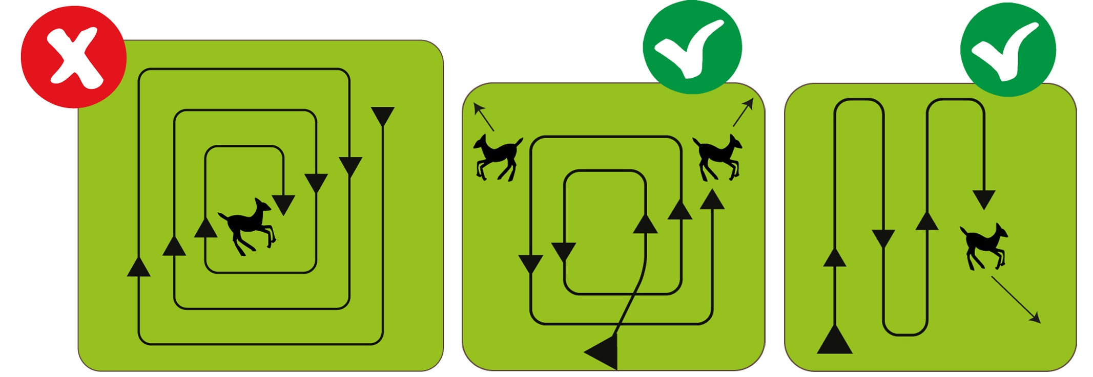 Afin de réduire au maximum le nombre de faons tués lors des fauchages de mai à juin, observer les règles suivantes: