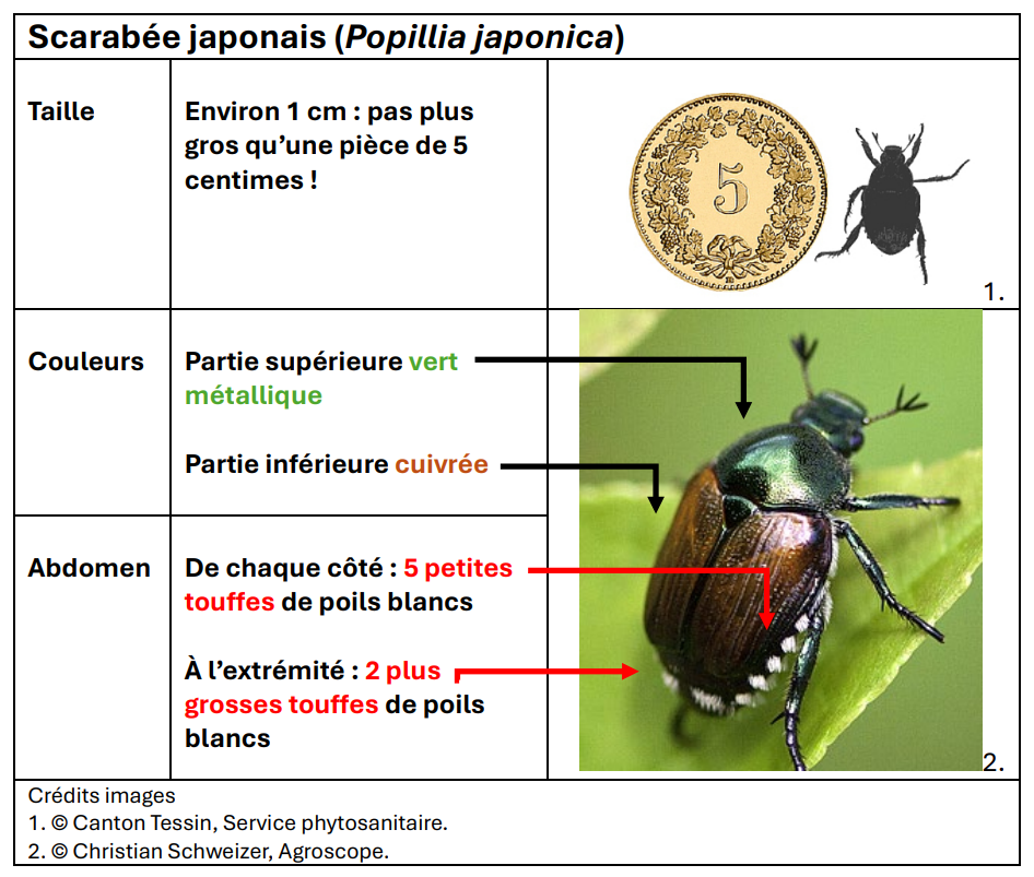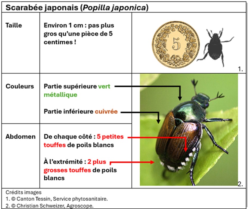 Agroscope - page officielle : https://www.agroscope.admin.ch/agroscope/fr/home/themes/production-vegetale/protection-vegetaux/service-phytosanitaire-agroscope/organismes-nuisibles-reglementes/organismes-quarantaine/le-scarabee-japonais.html