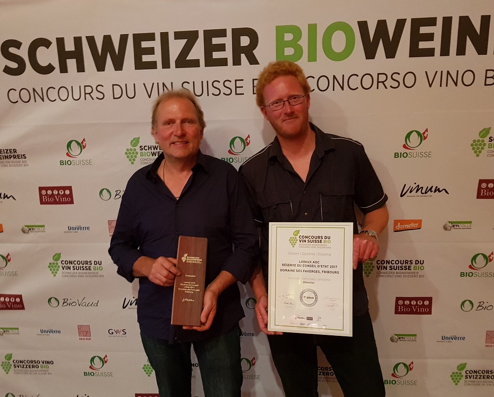 Les Vignobles de l’Etat de Fribourg ont été à l’honneur lors du Concours du Vin suisse bio qui s’est tenu le 19 juin 2019 à Berne. La « Réserve du Conseil d’Etat » 2017 du Domaine des Faverges a décroché la 1ère place dans la catégorie chasselas qui comptait 34 vins. Les jurés du Concours du Vin suisse bio, composés de spécialistes venant de l’œnologie, de la sommellerie, du commerce de vins et de la formation, ont dégusté à l’aveugle 280 vins suisses, répartis en 10 catégories. Le jury s’est basé sur les normes de l’Organisation internationale de la Vigne et du Vin (OIV). Ce bon résultat conforte la stratégie des Vignobles de l’Etat de Fribourg transcrite dans la gamme des vins bios débutée en 2013.