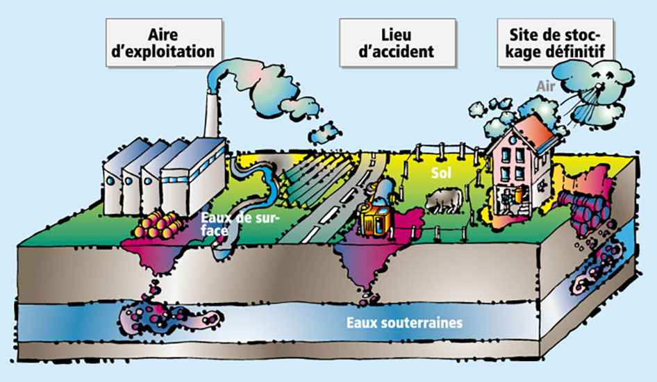 Les biens à protéger sont les eaux superficielles, les eaux souterraines, les sols et l'air.