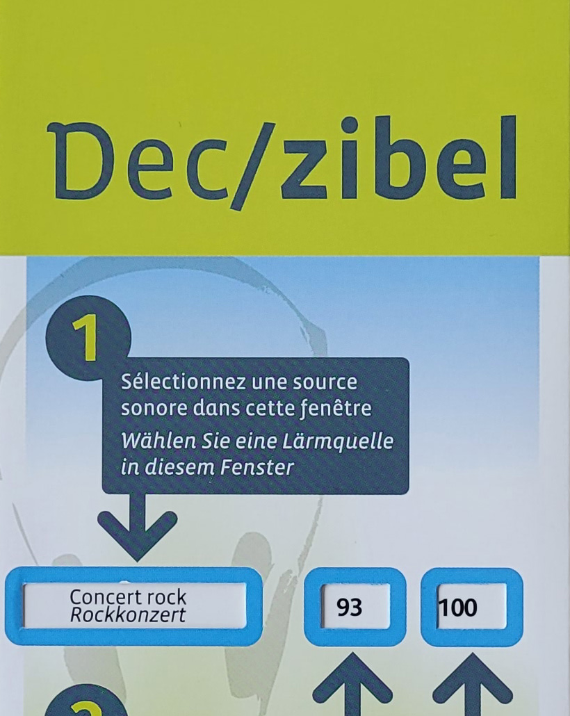 Demander aux organisateurs de manifestations de distribuer à leurs spectateurs une documentation explicative sur la problématique du bruit.Le Service de l'environnement a édité une "réglette", avec notamment des données sur l'exposition tolérable par jour. Cette documentation a été réalisée d'après un concept du Centre d'information et de documentation sur le bruit (France). C'est très volontiers que nous mettrons le nombre d'exemplaires nécessaires à votre disposition.