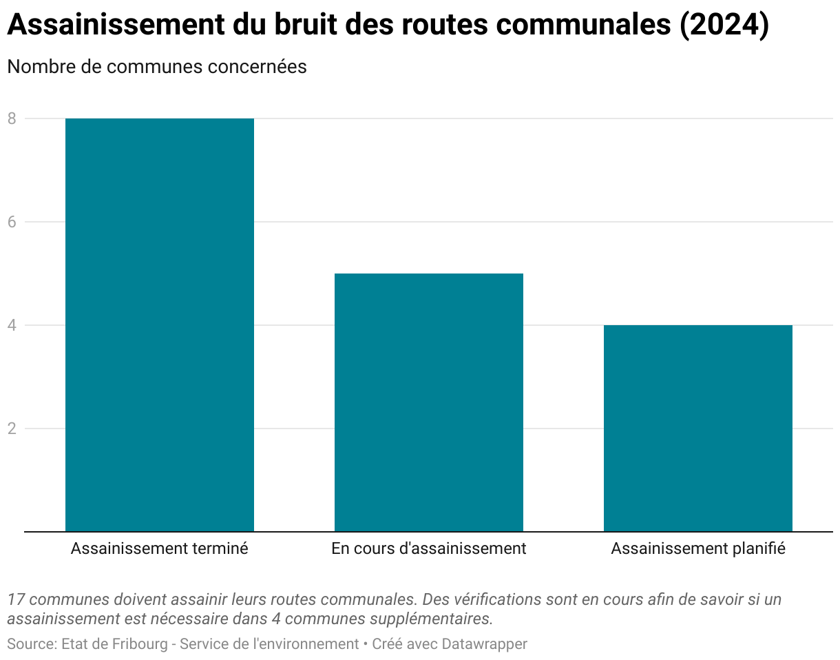 - La majorité des grandes communes du canton ainsi que le canton lui-même par son Service des ponts et chaussées sont en train d’assainir activement leurs routes ou de préparer l’exécution de l’assainissement.
