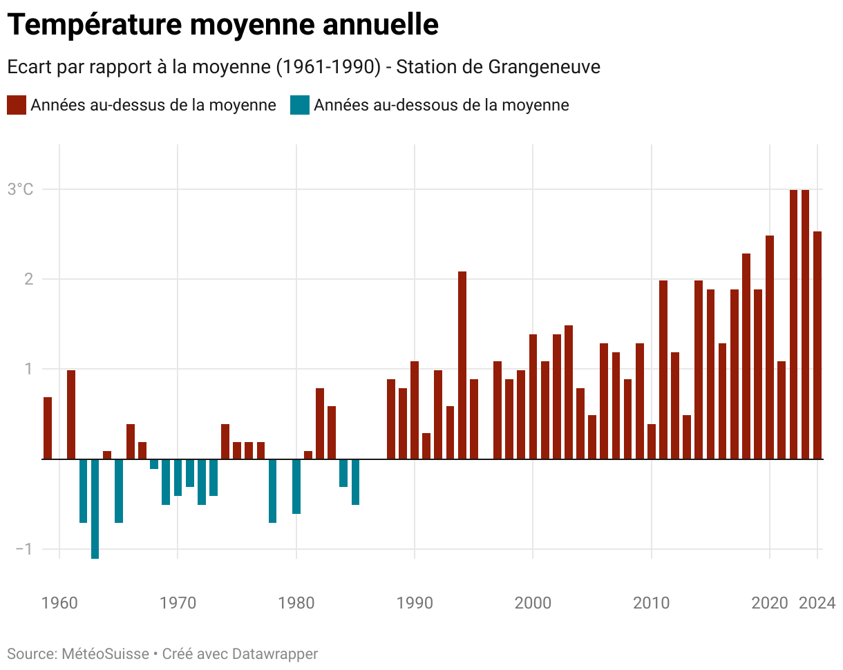 Les impacts de ces changements sont déjà visibles dans le pays et le canton de Fribourg : recul des glaciers, augmentation de la température des lacs et cours d’eau, modification du développement saisonnier des plantes ou encore augmentation du nombre de décès lors des vagues de chaleur.
