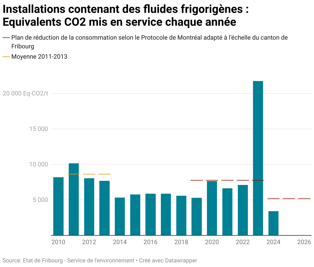 - Les équivalents CO₂ mis sur le marché dans tous les secteurs utilisant des fluides frigorigènes diminue depuis 2024.