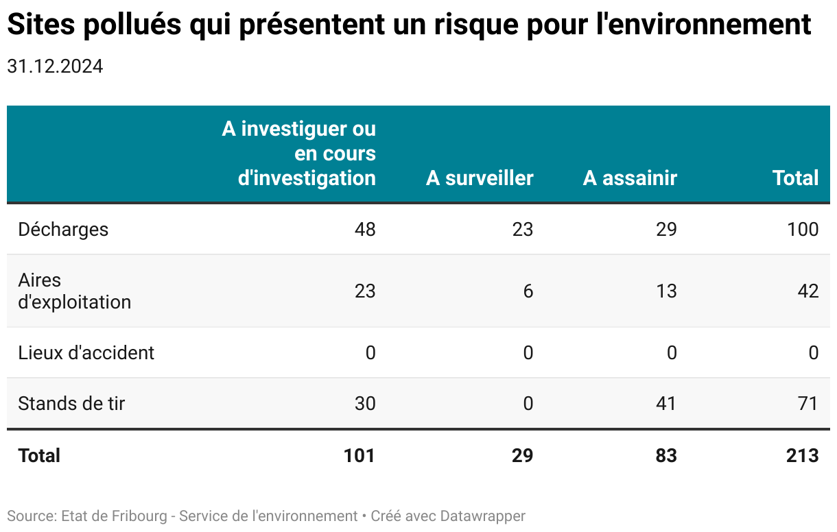 Le canton tient à jour un cadastre qui recense les sites sur lesquels des substances polluantes ont été utilisées, déversées ou stockées (sites de stockage définitifs de déchets, aires d'exploitation, lieux d'accident et stands de tir). Des investigations sont menées pour identifier les atteintes à l’environnement, assainir les sites contaminés ou prévenir les menaces à plus long terme. Le but est de stopper l’introduction de substances polluantes dans les eaux souterraines, dans les eaux de surface, dans les sols et dans l’air.