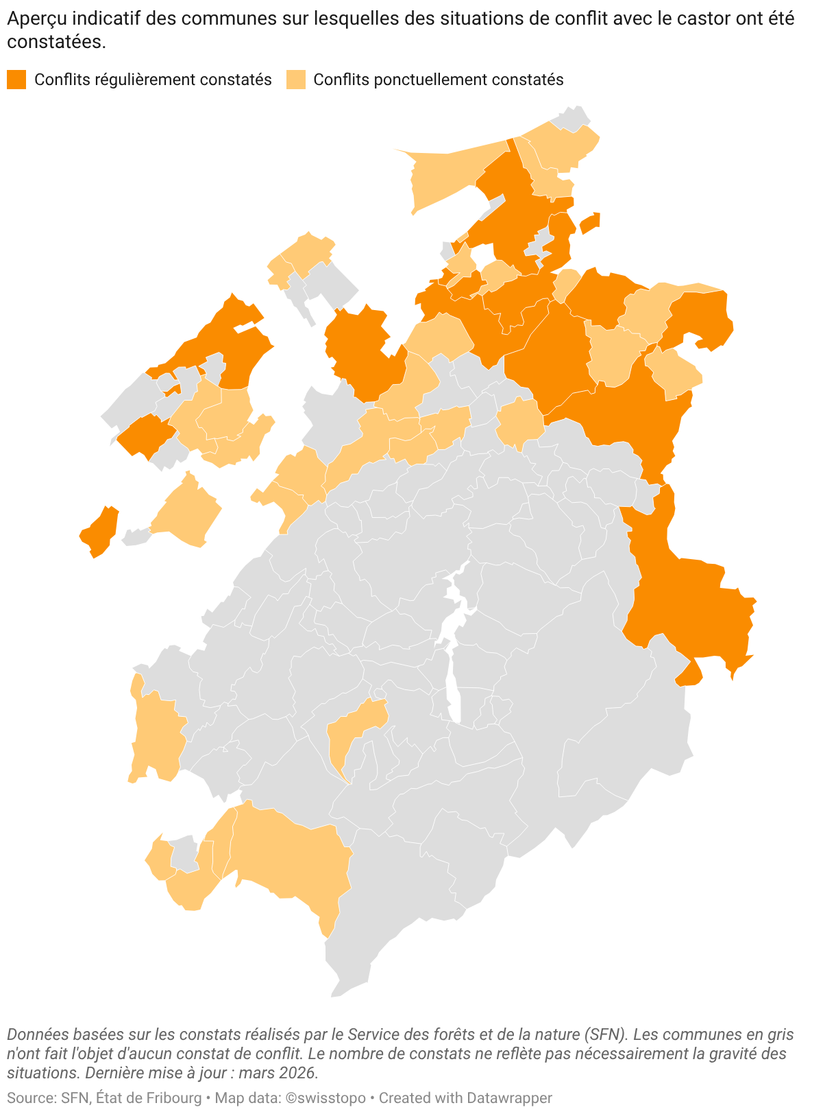 Afin d’anticiper les conflits et d’assurer une gestion cohérente du castor à l’échelle du territoire, le canton de Fribourg élabore actuellement une planification cantonale castor.
