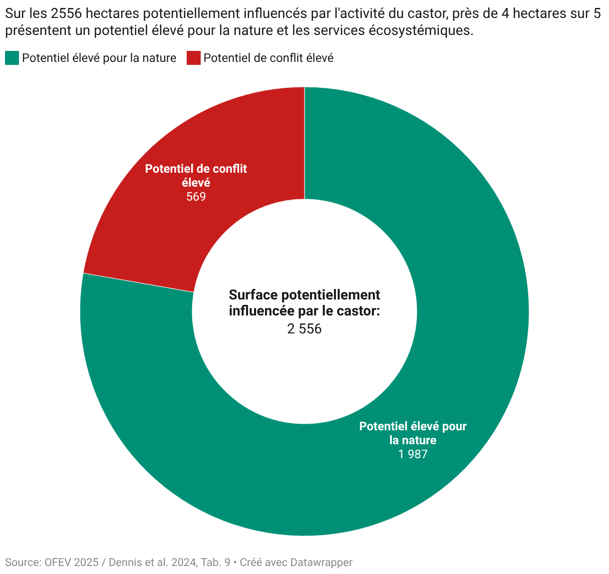 Source des chiffres clés : Le castor – un partenaire efficace pour des eaux vivantes, OFEV 2025