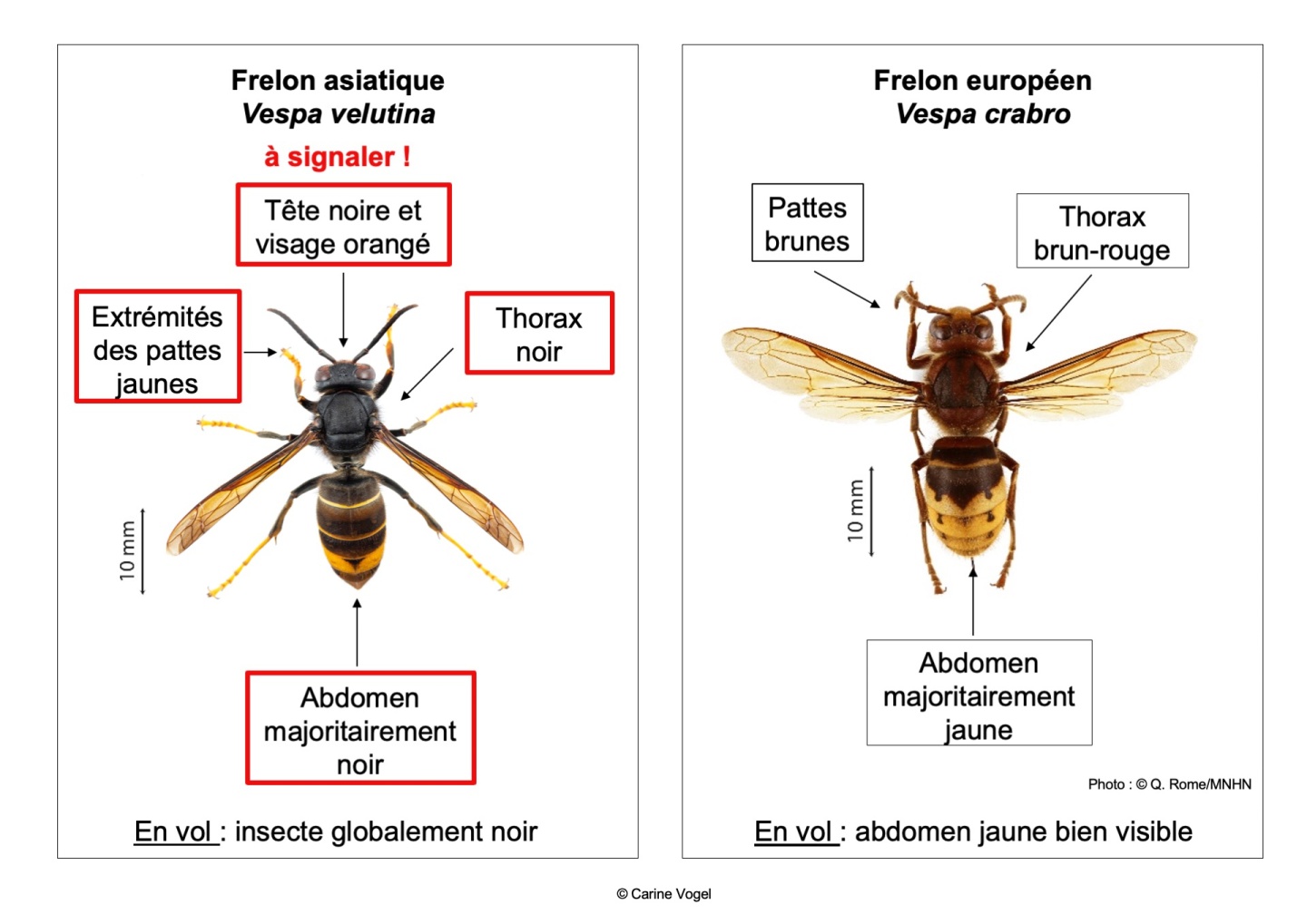 Plus d’informations sur le frelon asiatique, sa reconnaissance et son comportement sont à retrouver dans les sites en lien.