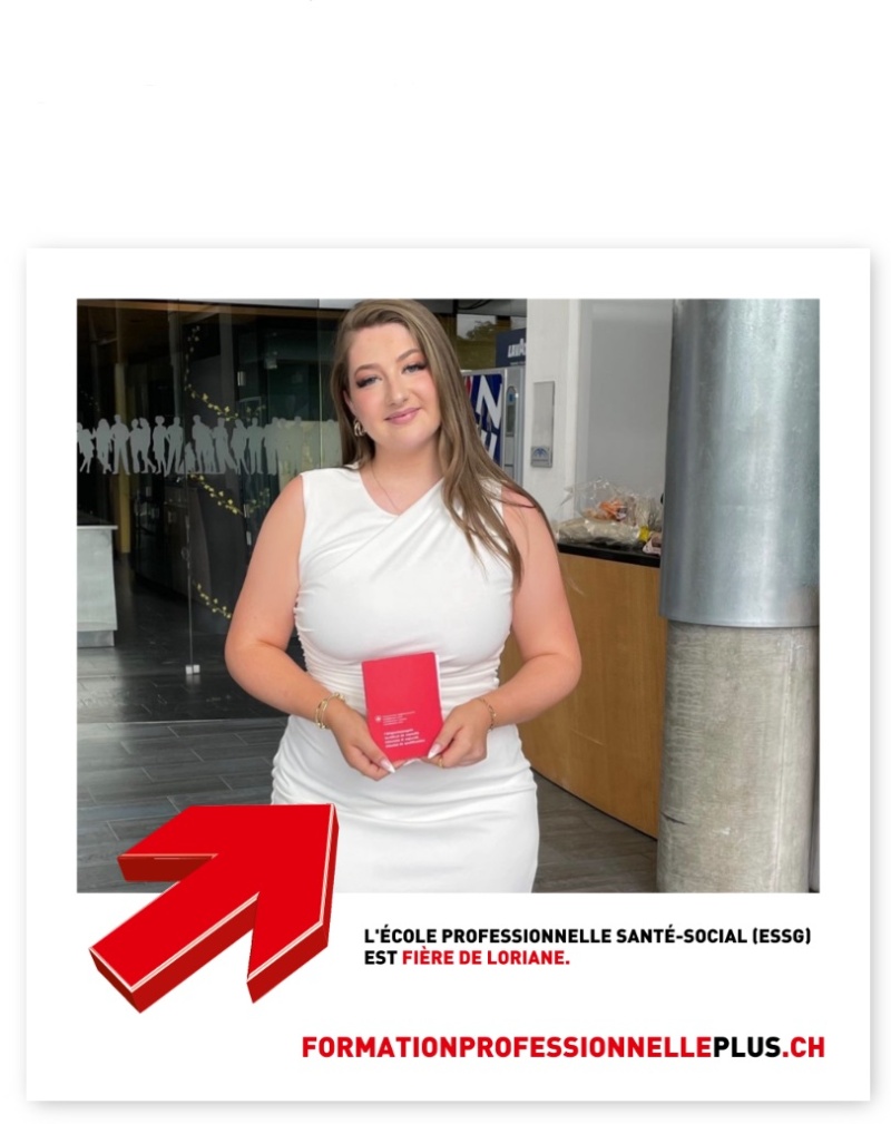 L'ESSG tient à remercier chaleureusement Loriane pour son excellent travail tout au long de son apprentissage. Il est maintenant temps pour elle de poursuivre sa formation avec la maturité professionnelle, grâce à laquelle elle ambitionne d'entrer à la Haute école de gestion (HEG) de Fribourg.