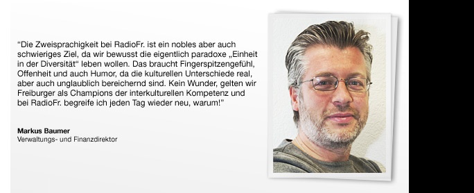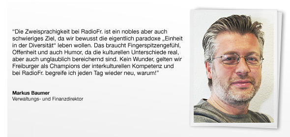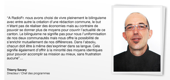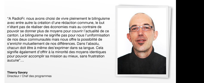 La direction et la rédaction de RadioFR sont bilingues, tout en diffusant deux programmes distincts.