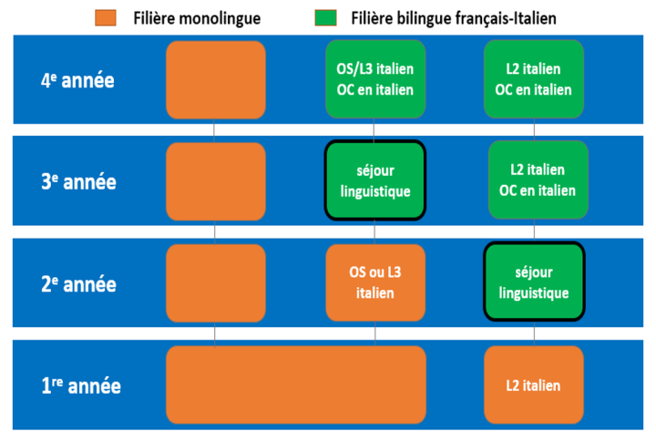 La formation bilingue « français-italien » s’adresse aux élèves étudiant l’italien au gymnase.
