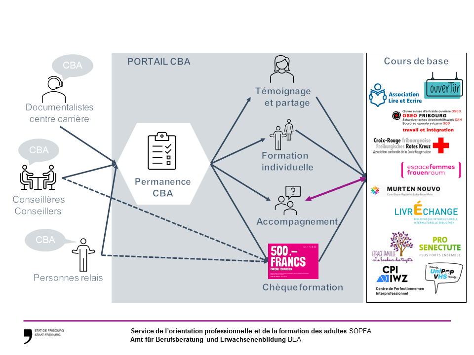 - Se rendre à la permanence gratuite le JEUDI de 13h30 à 16h30 au Centre de carrières, Rte des Arsenaux 41, 1700 Fribourg Personne de contact : Annick Rossier, +41 26 305 41 05