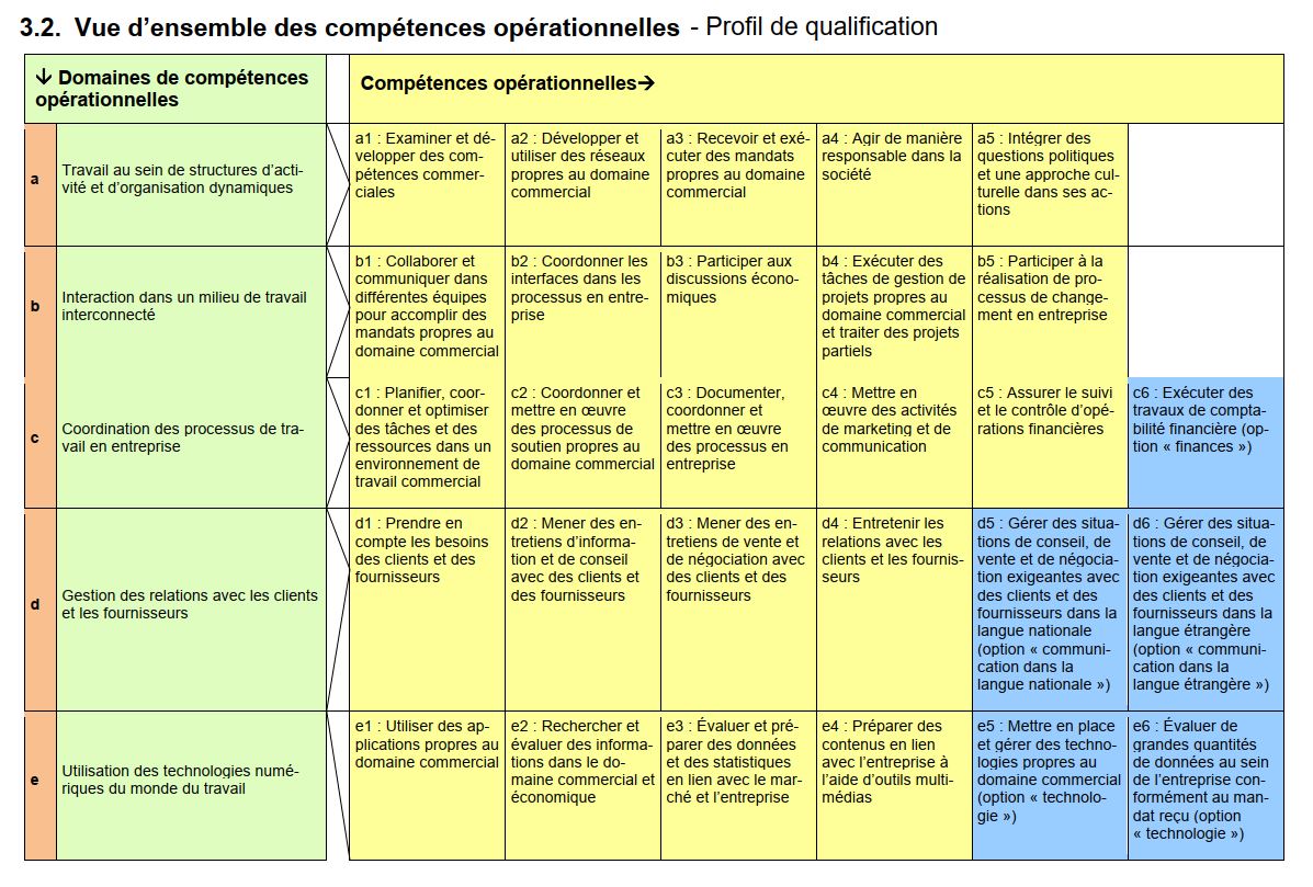 Il s'agit du descriptif des 5 domaines de compétences opérationnelles. Chaque domaine est composé de plusieurs compétences opérationnelles qui seront vues en entreprise, à l'école professionnelle et aux cours interentreprises.